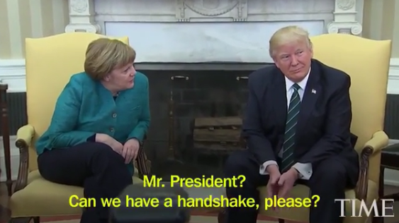 The German Chancellor was a guest at the White House and during a sit down with Merkel to take photos after their talk, Donald Trump refused to shake her hands.