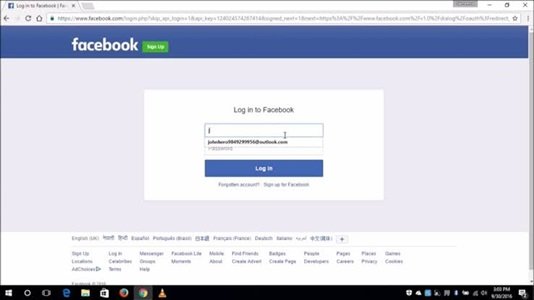 • Input your Facebook login password